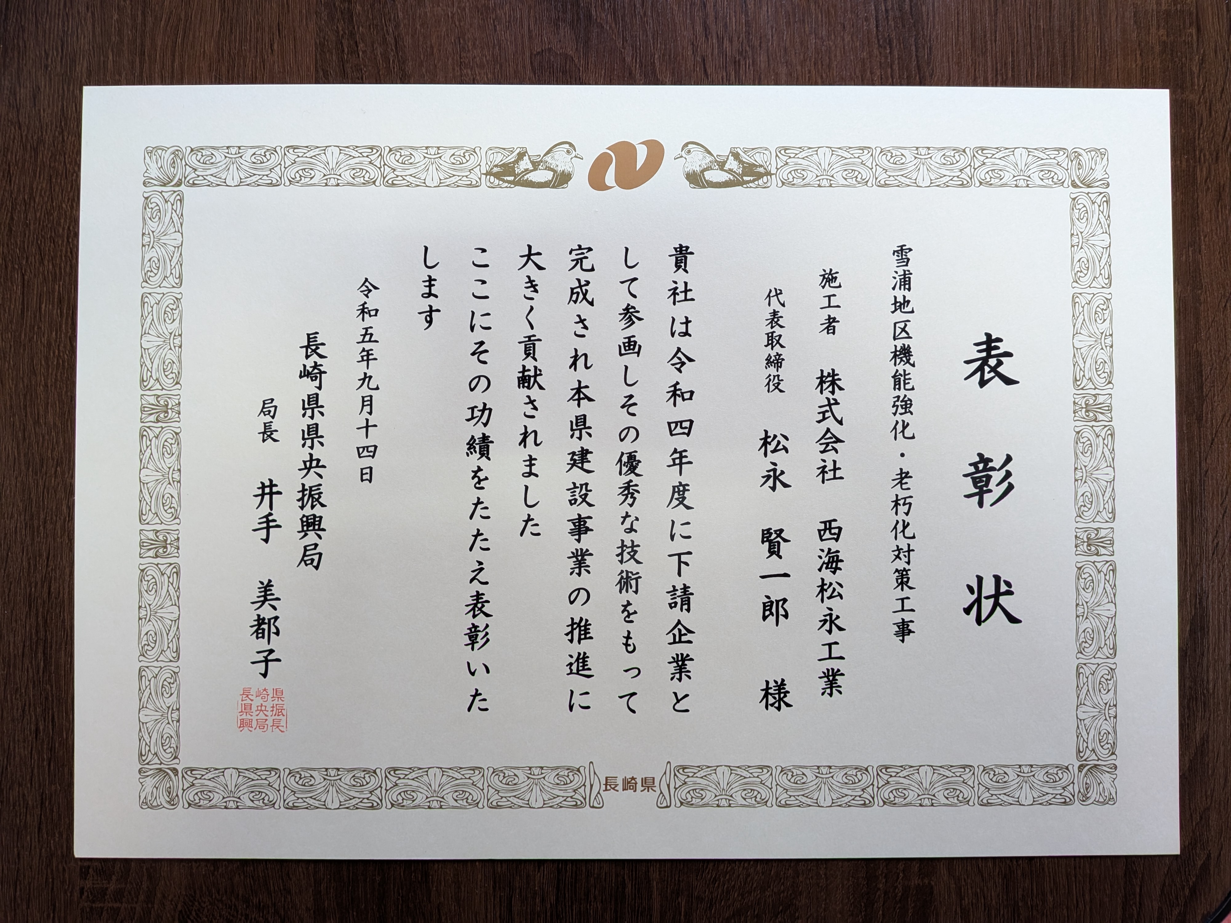 令和4年度 雪ノ浦地区機能強化・老朽化対策工事(長崎県表彰)